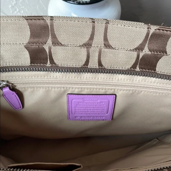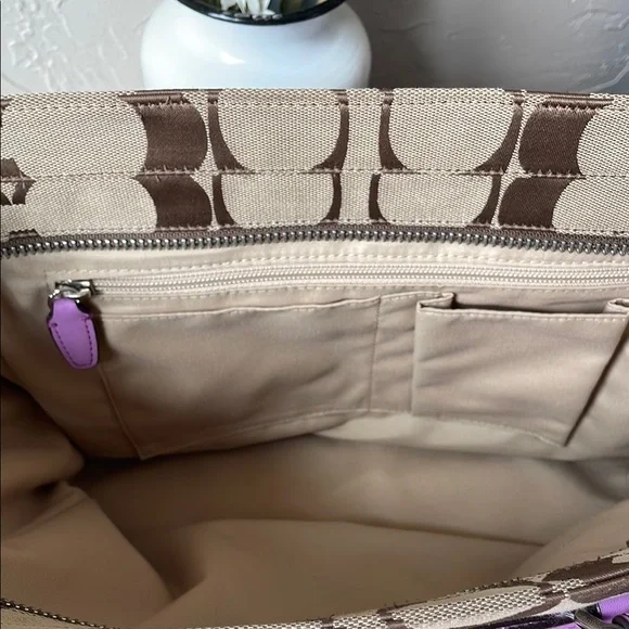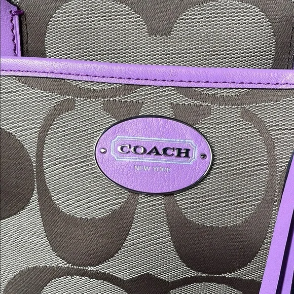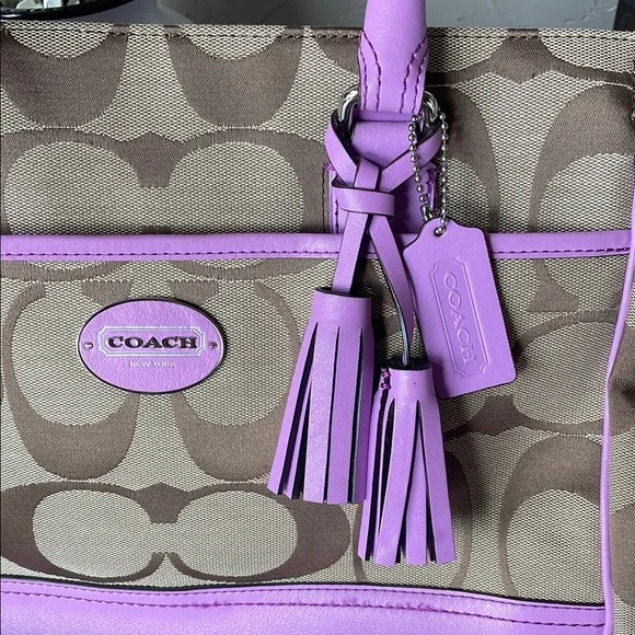 Coach Signature Canvas Tote Bag - Brown and Purple
