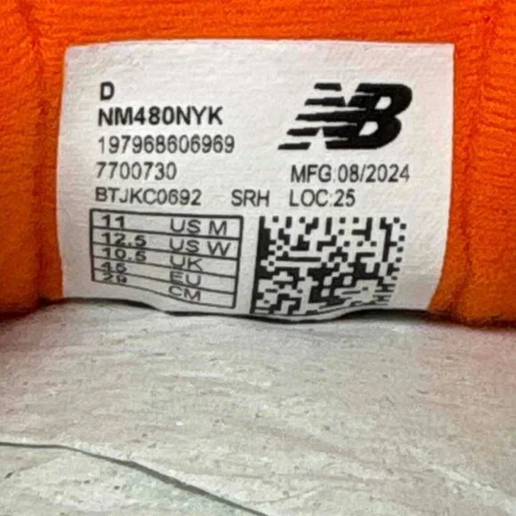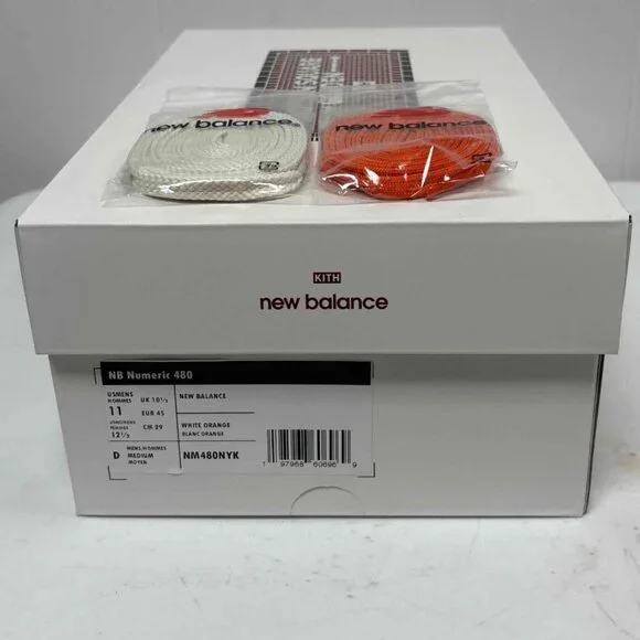 You are looking at a used pair of Men´s New Balance Numeric 480 Kith Madison Square Garden (NM480NYK), the Color is White/Orange & the Size is Men´s 11. Comes with OG All - Box, Paper, Extra Laces, Tissue Paper Shoetrees/Toebox Inserts. These sneakers are in very good used shape, no rips, holes, stains, etc. There´s a little bit of dirt on the outsole. Worn once. The New Balance Numeric 480 Kith Madison Square Garden White Orange is a striking collaboration that pays homage to one of New York City´s most iconic venues. This sleek sneaker features a pristine white leather upper, accented with vibrant orange details that capture the energy and excitement of Madison Square Garden. The shoe´s design seamlessly blends classic New Balance aesthetics with modern skateboarding functionality, making it a versatile choice for both street style and performance.
