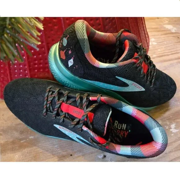 Brooks Ghost 16 Run Merry Xmas Plaid/Pine Cross Train Low Sport Runner 1104181D