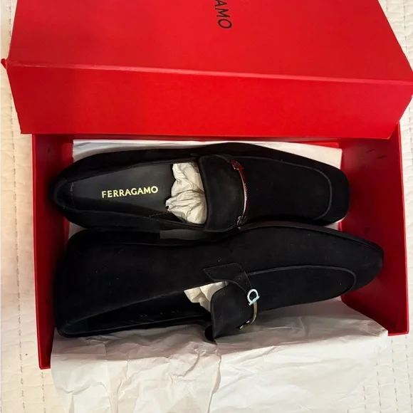 Salvatore Ferragamo Black Leather Loafers with Metallic Accent