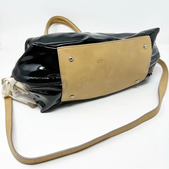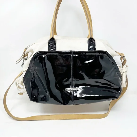 Sportsmax Patent Leather Canvas Natural Leather Hobo Bag