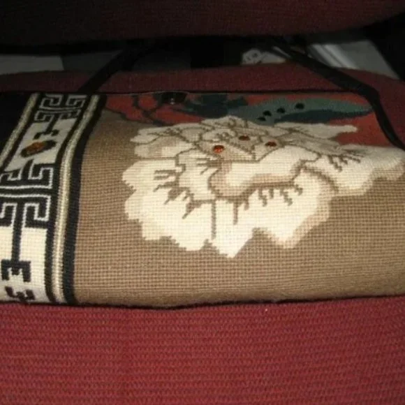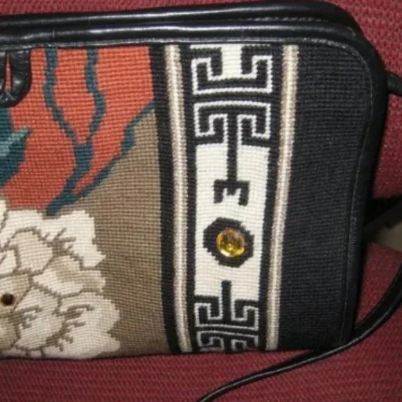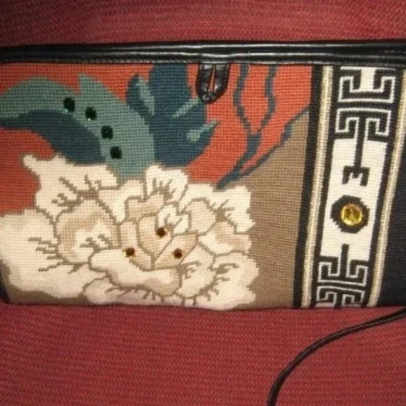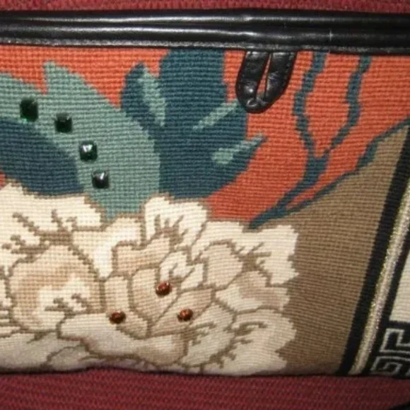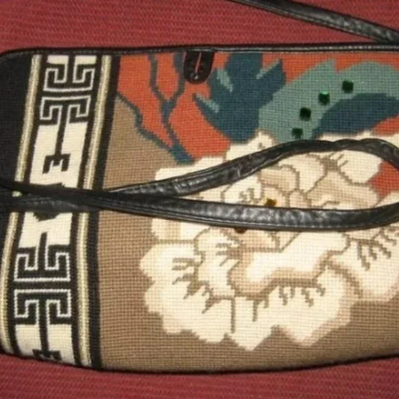 ❤️PATRICIA SMITH MOON BAGS Tapestry Beaded Leather Frame Crossbody Purse