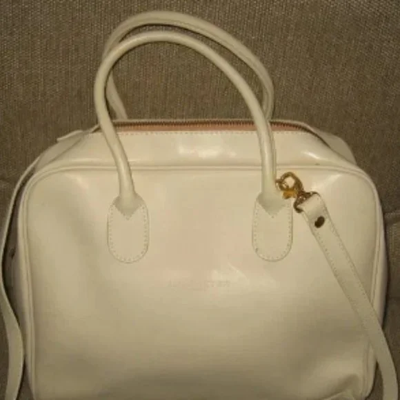 ❤️LANCASTER MADE IN FRANCE WHITE LEATHER SPEEDY SHOPPER PURSE + STRAP