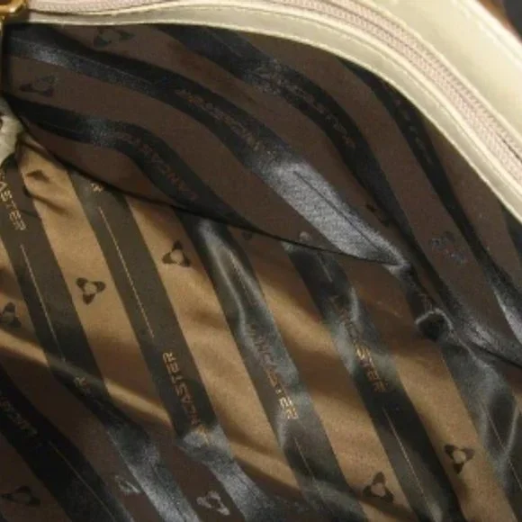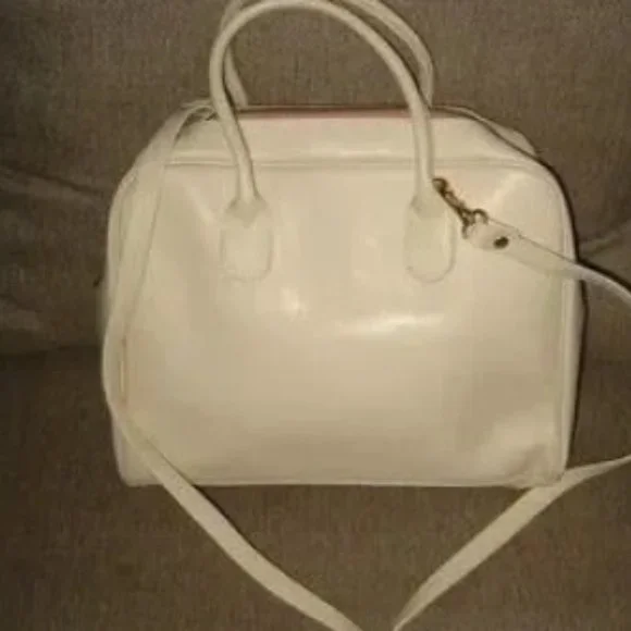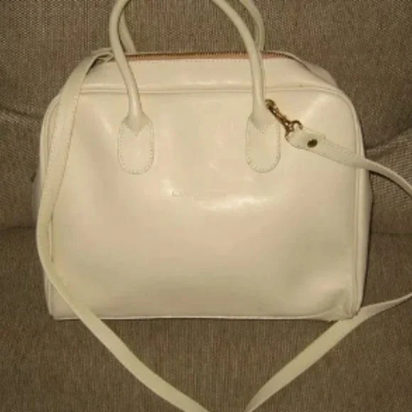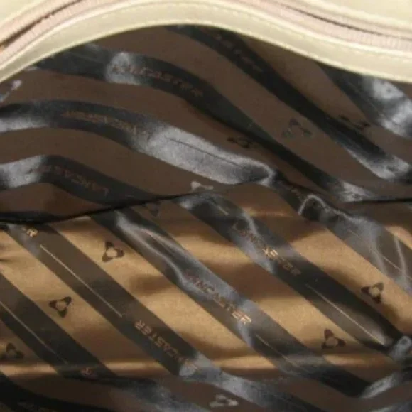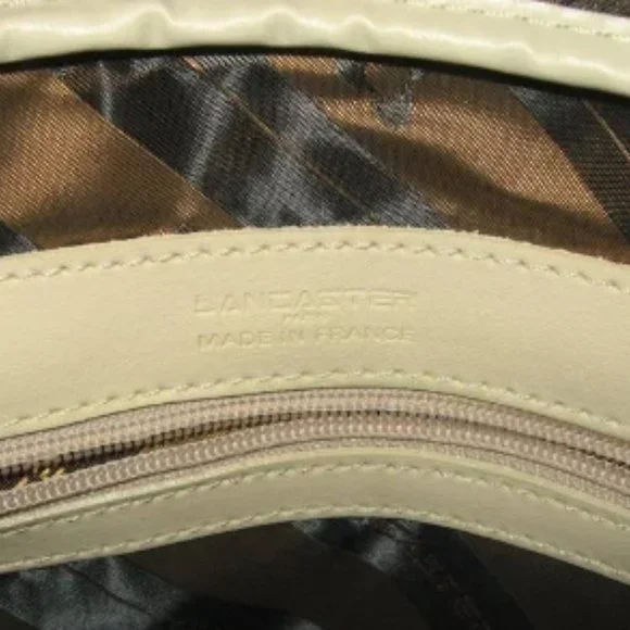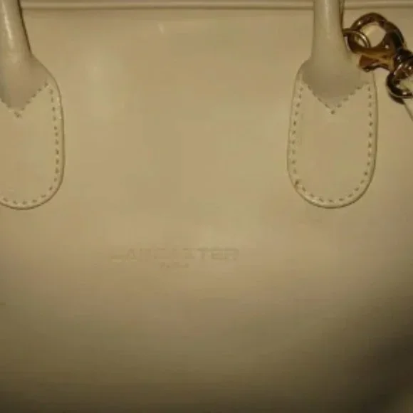 ❤️LANCASTER MADE IN FRANCE WHITE LEATHER SPEEDY SHOPPER PURSE + STRAPPRE-OWNED CONDITION. MAINLY FLAWS DUE STORAGE. INDENTATION IN ONE CORNER DUE TO STORAGE. Check pictures for more details. NOT RETAIL NEW10 1/2" WIDE X 8 1/2" TALL.To make sure it is what you want, I gladly and quickly answer all your questions.