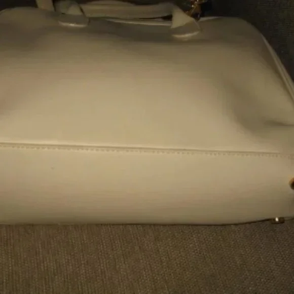 ❤️LANCASTER MADE IN FRANCE WHITE LEATHER SPEEDY SHOPPER PURSE + STRAPPRE-OWNED CONDITION. MAINLY FLAWS DUE STORAGE. INDENTATION IN ONE CORNER DUE TO STORAGE. Check pictures...