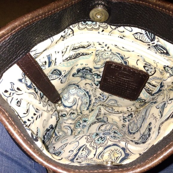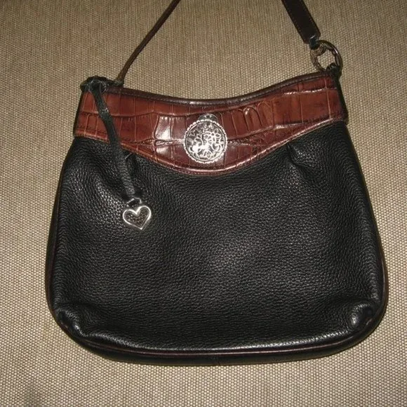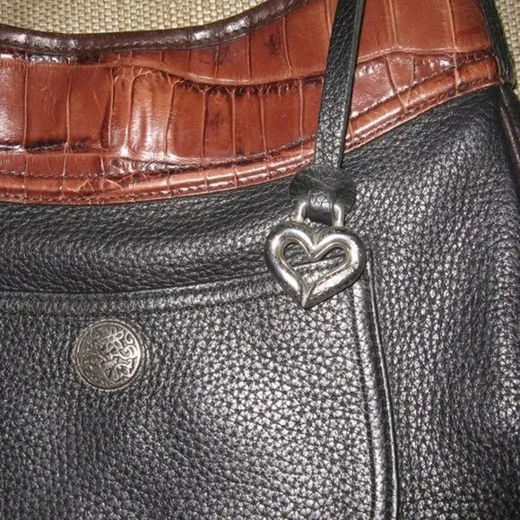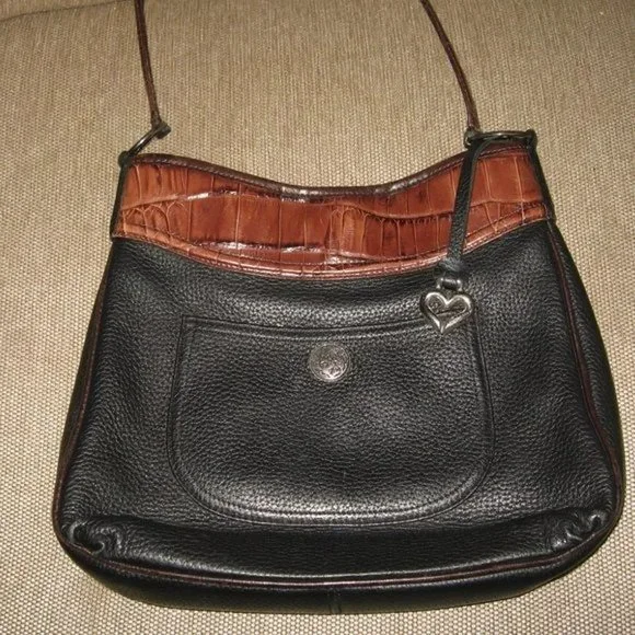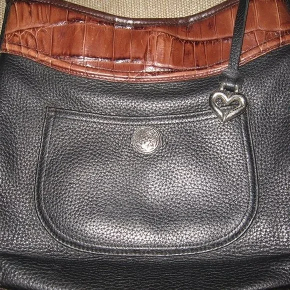 ❤️BRIGHTON BROWN CROC / BLACK Leather Hobo Purse Brighton +Heart Fob HangtagThe front has Croco on Top and Black pebbled leather body.Accented with the classic silver...