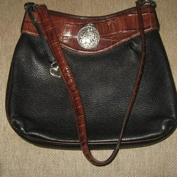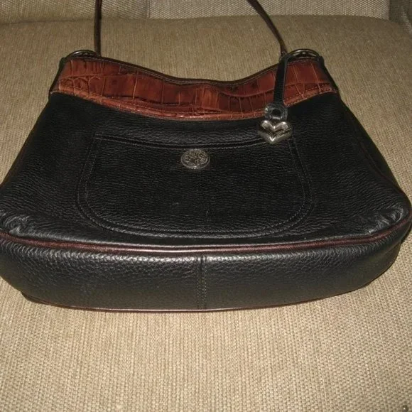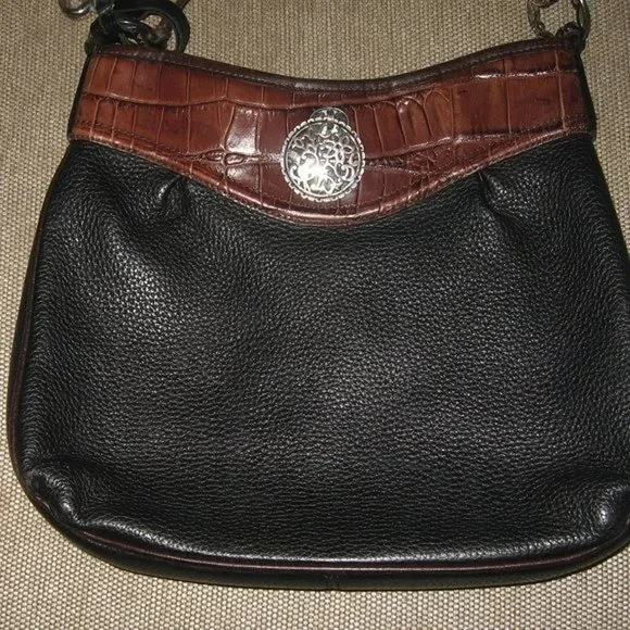 ❤️BRIGHTON BROWN CROC / BLACK Leather Hobo Purse Brighton +Heart Fob HangtagThe front has Croco on Top and Black pebbled leather body.Accented with the classic silver hardware. The back has an open pouch for quick access to keys or cell phone or lipstick.Beautiful bag in pre-owned condition. Some light scuffs possible and mainly hardware has some turning. NOT RETAIL NEW.Measures: 12" wide measured flat. 9" tall measured up the middle. 12" strap drop.To make sure it is what you want, I gladly and quickly answer all your questions.