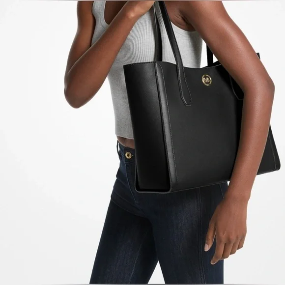 Michael KorsLeida Large Tote BagNWT - Still wrapped up• Tote bag• Coated canvas blend• 88.92% coated canvas/11.08% polyester• Gold-tone hardware• 15.75”W X 11.5”H X 5.5”D• Handle drop: 11”• Interior details: back zip pocket• Lining: 100% polyester• Zip fastening• Imported• Style # 35S4G9GT3L