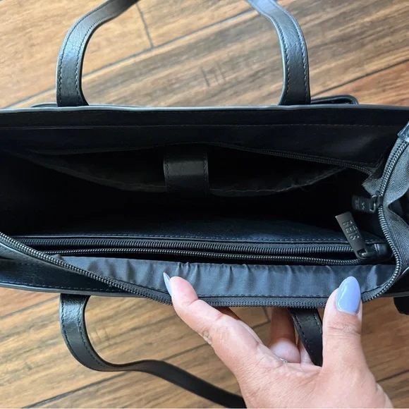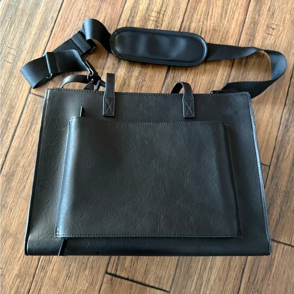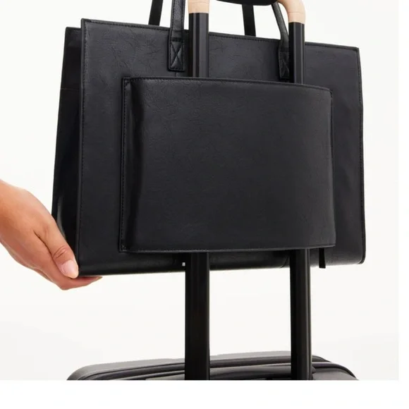 Perfect work tote - Functional and Stylish!Details: Secure zipper closure with signature BÉIS metal pull, Vegan leather shoulder strap drop (10"), two side pockets (one zip, one slip), sturdy metal feet, and interior organization (2 slip pockets, 2 pen pockets, 1 zip pocket).11" H x 14.25" W x 6" DFEATURE HIGHLIGHTS- Laptop Sleeve- Organizational Pockets- Water Bottle Pocket- Widened shoulder straps- Sturdier trolley pass-through- Sleek, rolled edges- Interior magnetic closuresBeautiful condition!