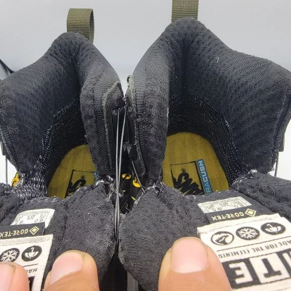 Good looking outdoors boots ready for all your heavy duty needs. As you can see in the pictures, there are tear on the toe area of both boots.These are second hand shoes, so there is signs of usage. Please look at the pictures to see any flaw the shoes may have.These are the exact same pair of shoes that you will be receiving.Please see pictures for more details.Features:• Mens 8• Womens 9.5• Gore Tex• Waterproof• Made for the elements• All Seasons• Made in ChinaSize: 8Condition: Pre-Owned GoodGood looking shoes If purchased during the week before 3:00 PM PST, I can usually ship same dayIf purchased on Friday after 12:00 pm PST, It will have to ship on MondayIf you have any questions, please feel free to contact me. I will do my best to assist you.