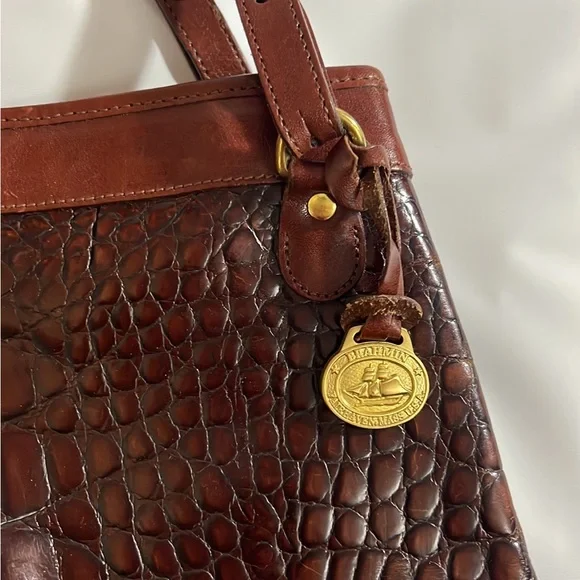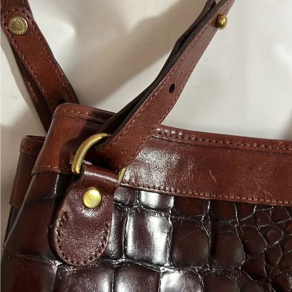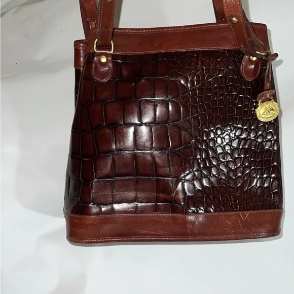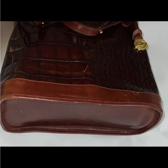 Brahmin Pecan & Black Crocodile embossed Leather Purse gently pre-owned authentic designer vintage Brahmin brand Purse/Handbag Genuine Leather Shoulder Bag Tote Style A classic...