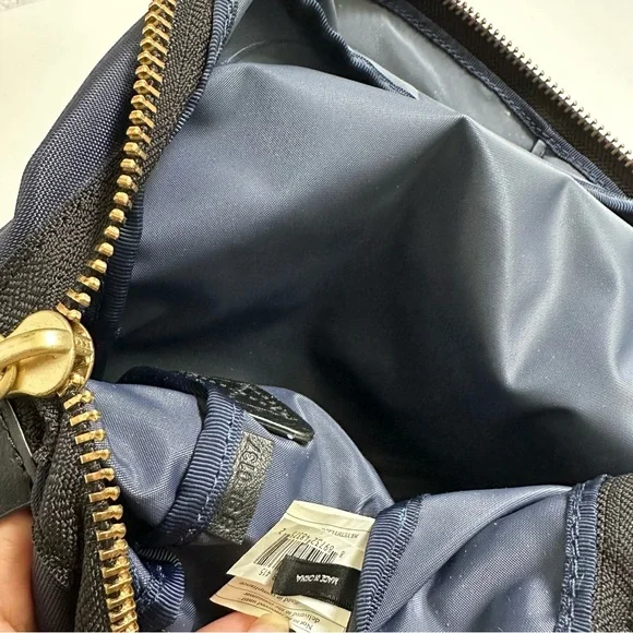 Marc Jacobs Mini Backpack Midnight Blue 12”Top handle. Back straps. Gold colored hardware and zippers. Leather zipper pulls. Two outer front pockets. Condition: Splashes of foundation. Should come clean, as it has with little effort. Otherwise very good condition. #accessories #backpacks