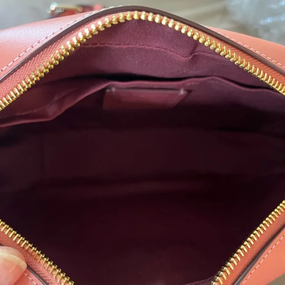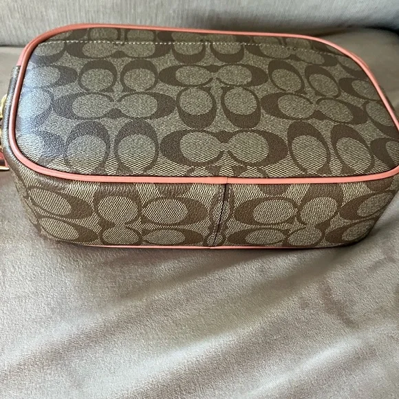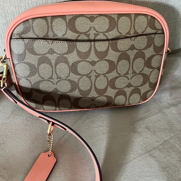 NWOT Coach Jamie Crossbody Camera Bag—Signature “C”print with light coral trim