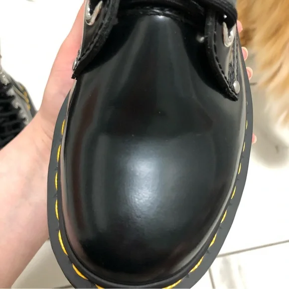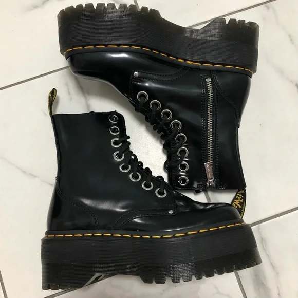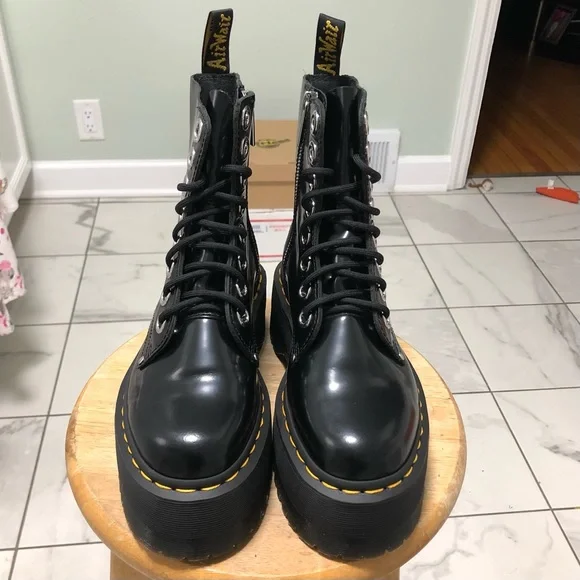 Dr. Martens black Jadon Max smooth leather chunky platform boots. Like new. Only tried on. The shoes have some light creases and some light wear to the soles. No box.UK size 4Women’s size 6No trades