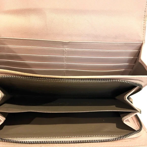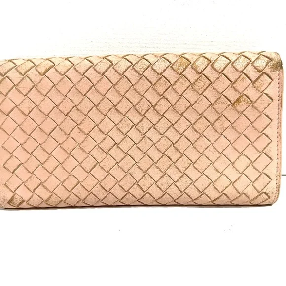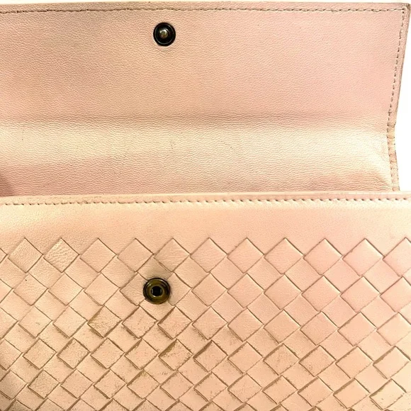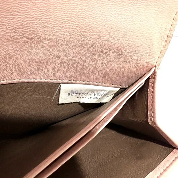 Bottega Veneta Intrecciato Flap Continental Wallet This is a subtle pink color that shows signs of wear. A cobbler can adjust the color. The wallet itself is in perfect condition.Make a great crossbody