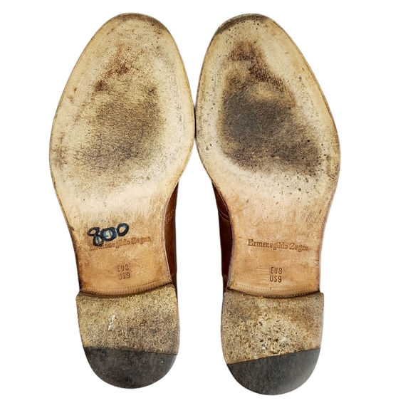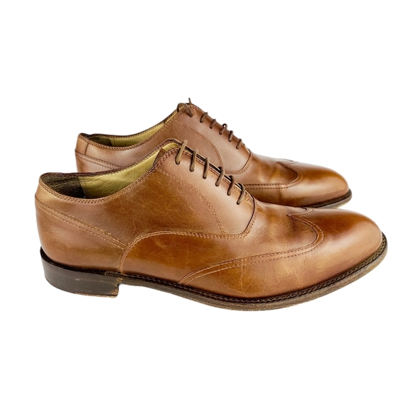 * Lace-Up* Round-toe* Leather Sole* TanHeels: 1″Made: Italyslight interior discoloration, Moderate scuffing at soles, slight scratches at leather.