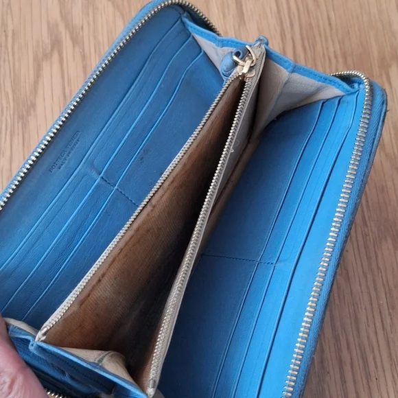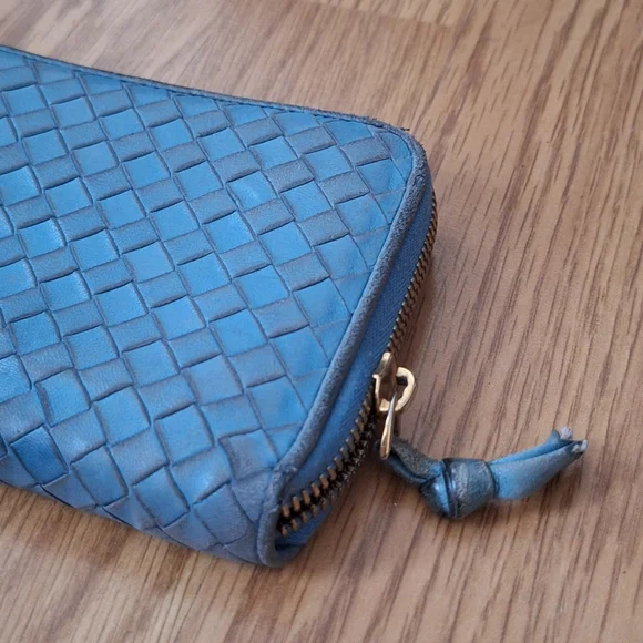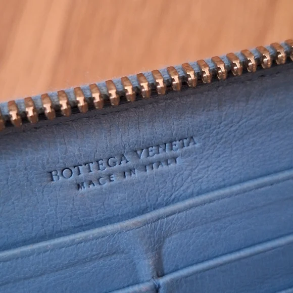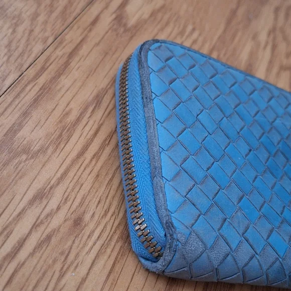 Bottega Veneta Light Blue Leather Zip Around Wallet