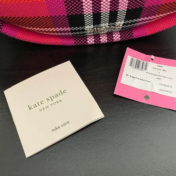 Kate Spade Smile Foliage Plaid Small Shoulder Bag PINK MULTI PLAIDNew with TagsApproximate measurements:5"h x 11"w x 2.5"dstrap drop: 10"plaid fabric with smooth leather trimfaille liningpinmount logoshoulder bag with zip-top closureinterior card slotsDust Bagimportedstyle # k4447