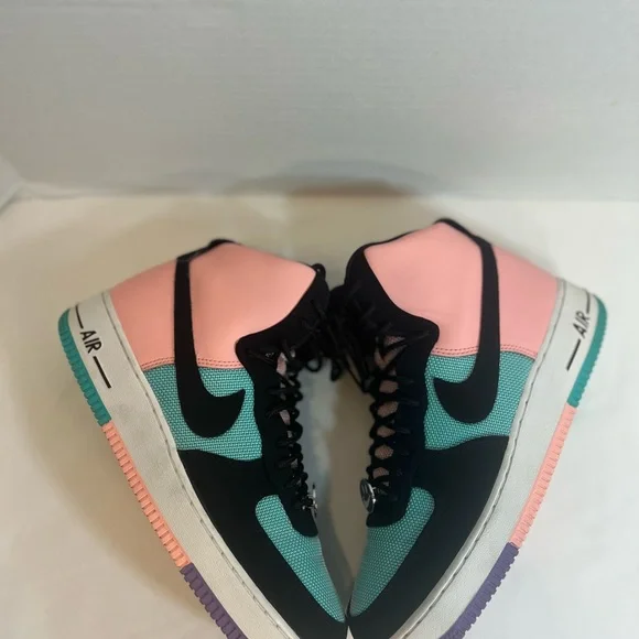 NIKE Have A Nike Day Air Force 1 High C12306-300 Pink/Green/Black Sz 9.5 Men´s signs of wear such as visual dirt and scuffs but in overall good condition without the box also no straps