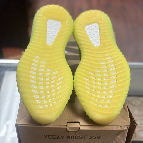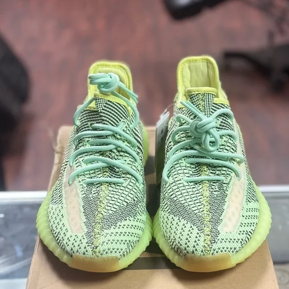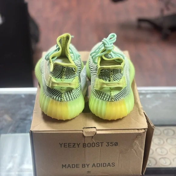 Eye-catching Yeezy Boost 350 V2 with lime and yellow hues. Ideal for a bold style statement.