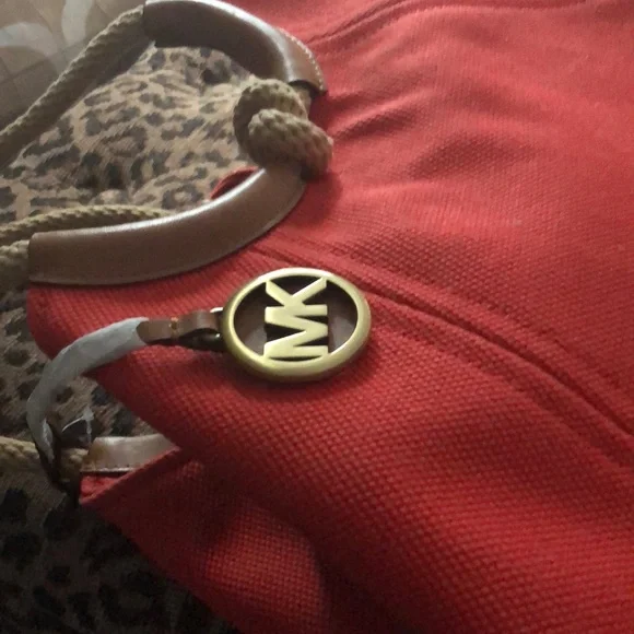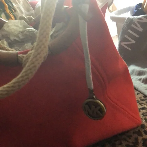 New Large Michael Kors Tote.Tangerine canvas material with leather trim.
