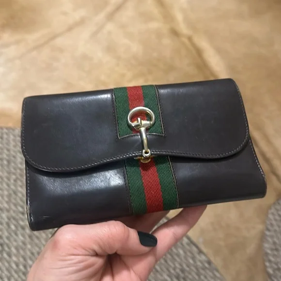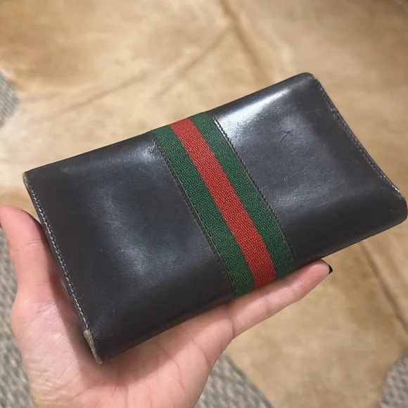 Dark brown, super soft, buttery leather in great vintage condition. Gold Hardware. Not certain of the era, most likely 1980 or 1990s7” x 4”✨Some wearing on the corners and light scuffing but otherwise gorgeous. Could use a light leather cleaning and conditioning. The gold has naturally lightened up from use. please review all photos.(( A perfect choice for aWOC - wallet on chain conversion ))Long wallet, checkbook, billfold.Made in Italy of the finest leather. The quality in the workmanship is exceptional and you can see why was originally famous for their leather goods.