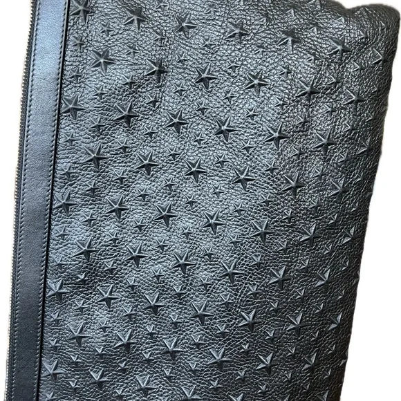 Jimmie Choo Derek Black Leather Star Embossed Envelope Bag/Clutch.