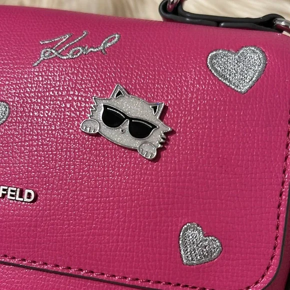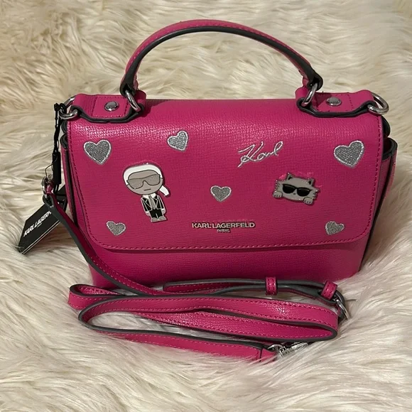 Karl Lagerfeld Vibrant Pink handbag with signature charms & silver hearts NEW!
