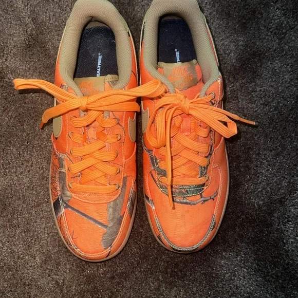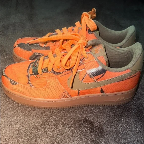 Nike Air Force 1 low orange Real Tree camo sneakers sz 7