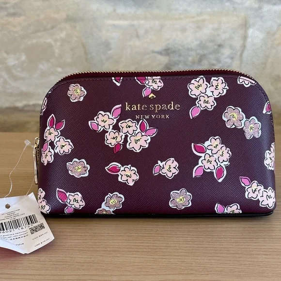 Kate spade frosted floral zip around cosmetic case deep berry NWT