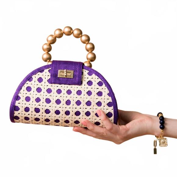 Thanks for checking out our fabulous Posh closet!! All of our items are new with tags! Never worn or used <3- Composition: T’nalak Fabric, Solihiya Rattan Weave And Brass Twist-lock Front Fastening- Description: Small in size but a total statement maker.Elevate your evening attire with the Women´s Statement Evening Handbag by Soli & Sun, a chic accessory that boasts a striking purple T´nalak fabric, complemented by woven rattan and gold wooden beads. This unique mini bag, designed by Clare Hynes, is not only a fashion statement but also a symbol of sustainability, with its Solihiya rattan weave crafted by T´boli tribe women in the Philippines. It features a convenient crossbody strap for hands-free ease and a brass twist-lock front fastening for secure closure. Dimensions: 8" length x 9" height.- Because all of our merchandise is brand new and often times in original packaging, extra photos or measurements cannot be provided- Heads-up that color shades may vary due to the photo lighting- We always put the color name in the title- All items are final sale- Thank you so much for shopping! We appreciate you :)