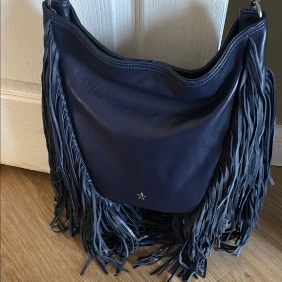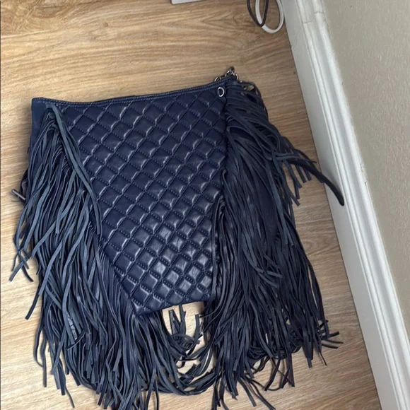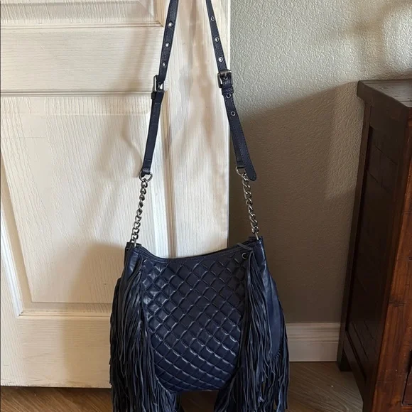 Stylish and chic, this Ash fringed quilted shoulder bag with chain crossbody strap is perfect for any occasion. The deep blue color adds a touch of elegance to your outfit. Never used