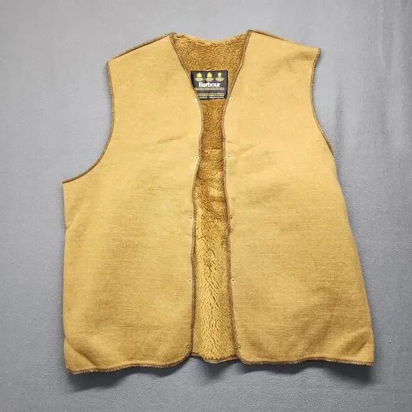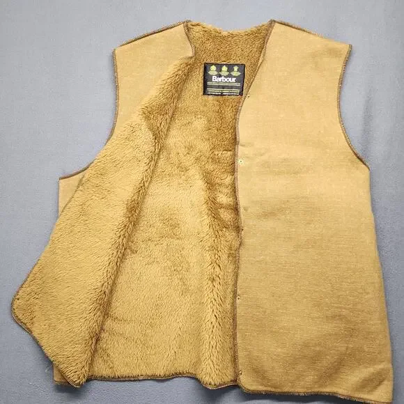 Barbour Fleece Vest Men XL Snap In Warm Pile Lining Liner British Tan Brown Vtg Excellent condition, no rips or stains.See photos for details and measurements
