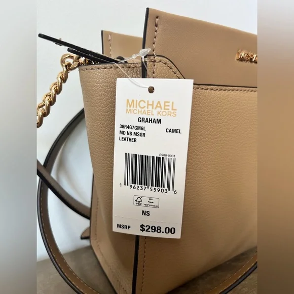 MICHAEL MICHAEL KORS Graham Medium North South Leather Messenger NWT