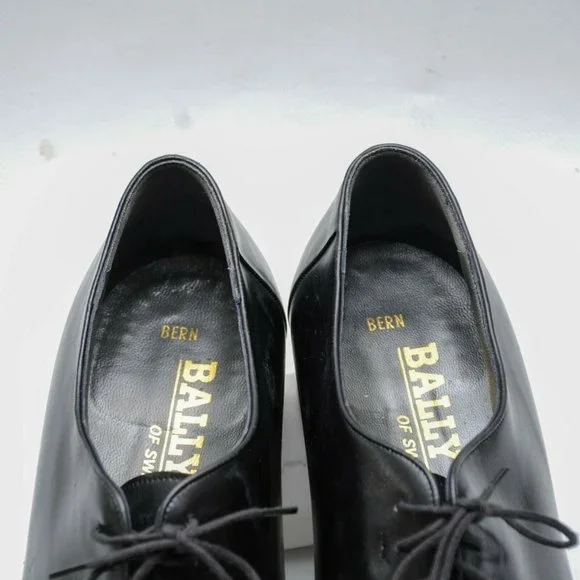 Bally of Switzerland Vintage Black Leather Oxford Dress Shoes Men´s 9 D Whole CutBally of Switzerland VintageBlack Leather UppersWhole Cut (The entire shoe is made from 1...