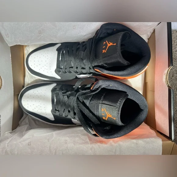 ✨ Jordan 1 Mid Shattered Backboard✨ Color: Black/White-Starfish✨ Size: Mens 10, Women’s 11.5✨ Condition: Excellent, worn once, nothing wrong with them just too big, no...