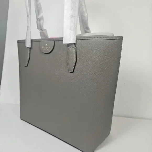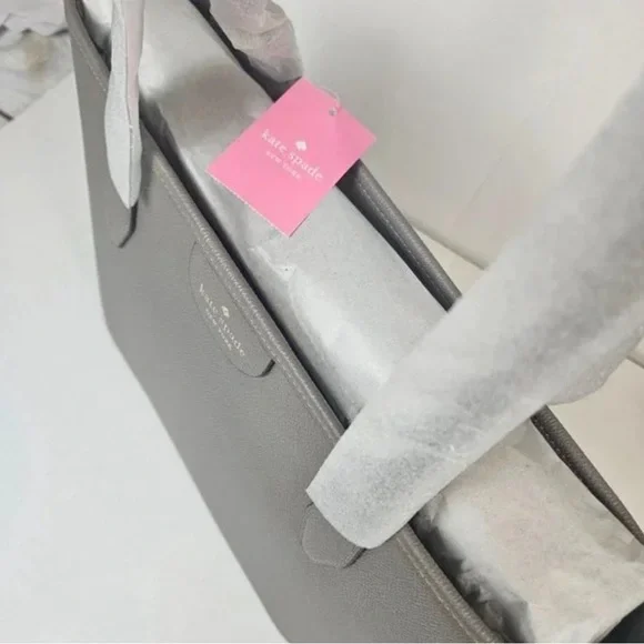 •Brand new with tags Kate Spade Lori large tote •Color: Thunder Cloud Gray•11.5"h x 16.13"w at top 12.63"w at bottom x 5.13"d •handle drop: 10" •textured pvc foil...