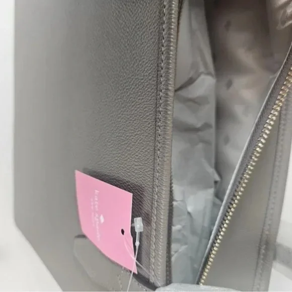 •Brand new with tags Kate Spade Lori large tote •Color: Thunder Cloud Gray•11.5"h x 16.13"w at top 12.63"w at bottom x 5.13"d •handle drop: 10" •textured pvc foil embossed logo •two way spade jacquard lining •interior: front slip & back zip pocket •drop in top zip closure