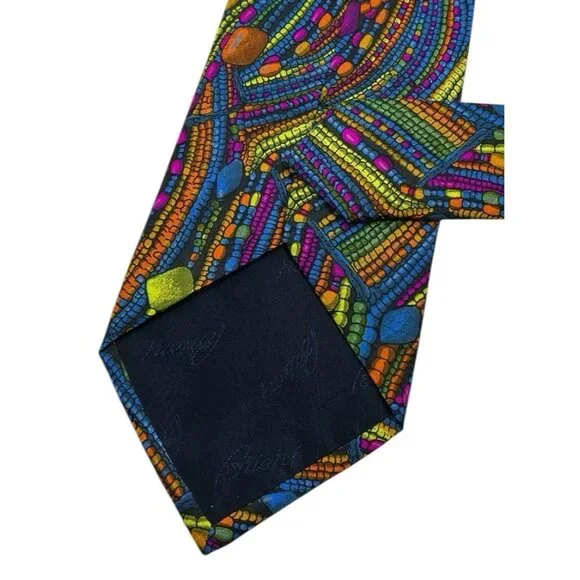 BRIONI Men´s 100% Silk Necktie LUXURY Tie Multicolor Geometric Art W:4.1" EUC