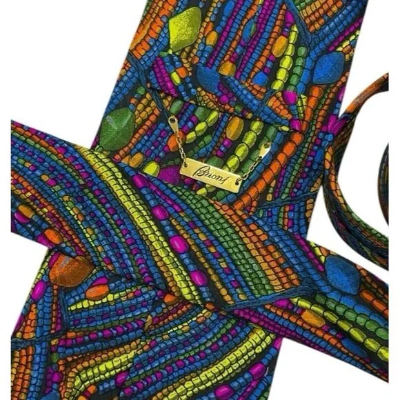 Brand : BRIONICountry Of Manufacture : ItalyType & Style : Men´s TieColor & Pattern : Multicolor GeometricMaterial : SilkSize : RegularMeasurements : L 59" W 4.1" Condition : ExcellentWelcome to S.I.R. LUXURY StoreAll our items are geniune and authentic.The color may vary slightly due to computer or phone screens.We will do our best to ship your item fast and carefully.If for any reason you are not satisfied with the item received, please write us before leaving bad feedback and we will resolve it immediately.Just give us a fair chance and we promise we can make you Happy, your satisfaction is our priority.You can also visit our store and take a look at our collection of items for men and women posted daily.Please do it and save us.Thank you.