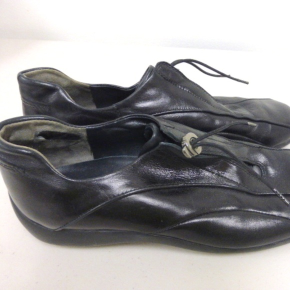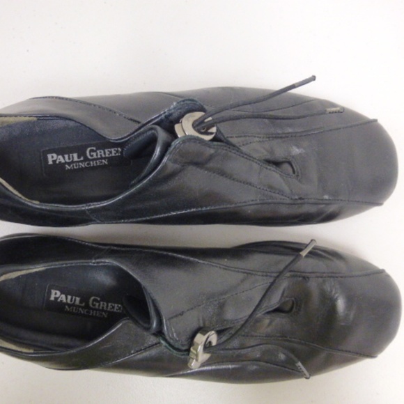 PAUL GREEN GERMANY BLACK LEATHER SHOES..ADJUSTABLE TOGGLE..LEATHER UPPER, COMPOSITION SOLE.great brand!!Adjustable toggle pull...SIZE 7.5uk, 10CONDITION: EXCELLENT