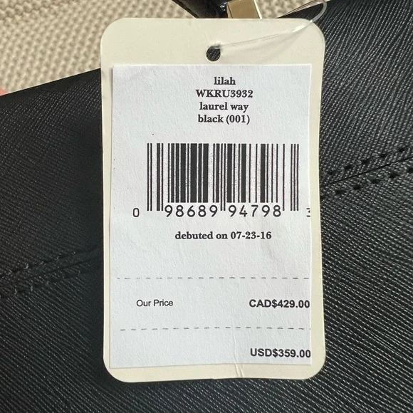 NWT Kate Spade Laurel Way Lilah Black Top Handle Satchel with Crossbody Strap