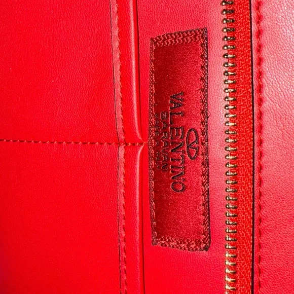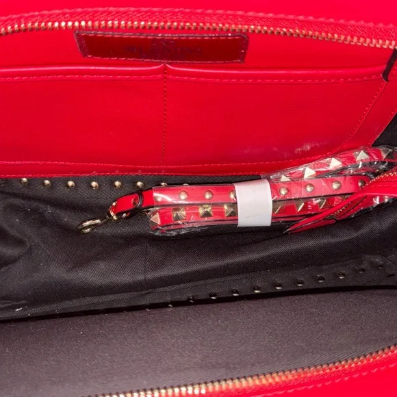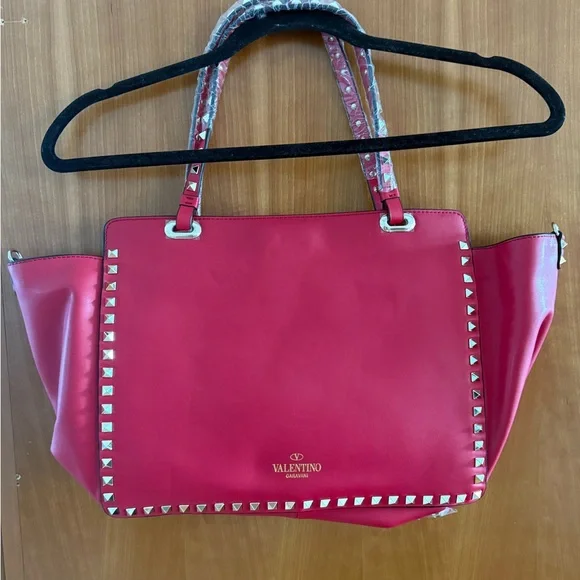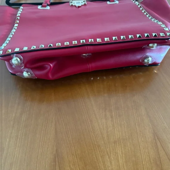 Elevate your style with this chic red tote bag, featuring eye-catching studded details. Perfect for any occasion.