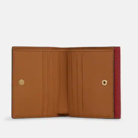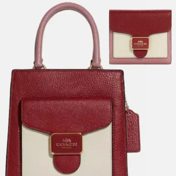 I ONLY HAVE INE… WALLEY!The WALLET CAN BE PURCHASED AS A SINGLE ITEM under this listing.If the wallet is sold… the combo in another listing will not be available! This Pepper Snap Wallet in Colorblock with the iconic Horse & Carriage Logo & Polished gold tone hardware crafted from Refined Pebble Leather truly makes a statement!It has 9 Card Slots, a Full-length bill compartment, & an Outside snap coin pocket,Style No. C6950. 4 1/4" (L) x 3 3/4" (H)