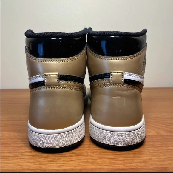Nike Air Jordan 1 Retro High OG NRG Gold Toe White Black Size 11 Sneakers 861428-007. Used and no box. Scuffs and marks. Drag. Wear in size tag. Replacement insoles. Flaws but...