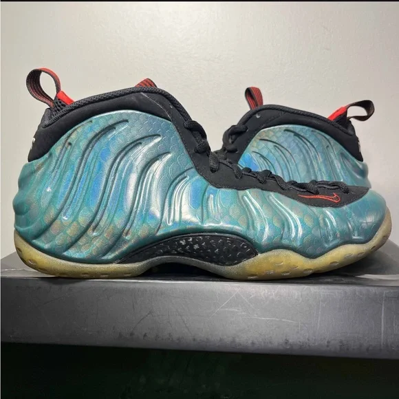 Nike Air Foamposite One Premium PRM Gone Fishing Size 9.5 Sneakers w/ Box 575420-300. Light wear and in great condition. Come with the original (damaged) box, but does not have the net. Sick pair of kicks!