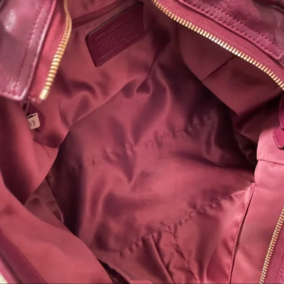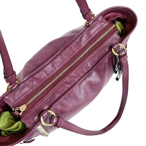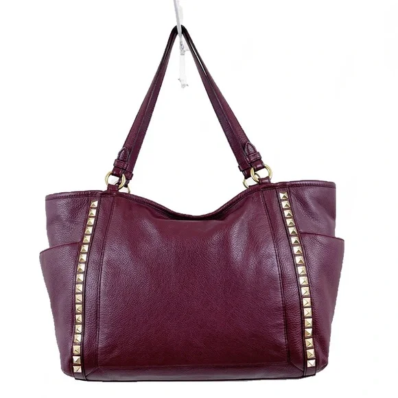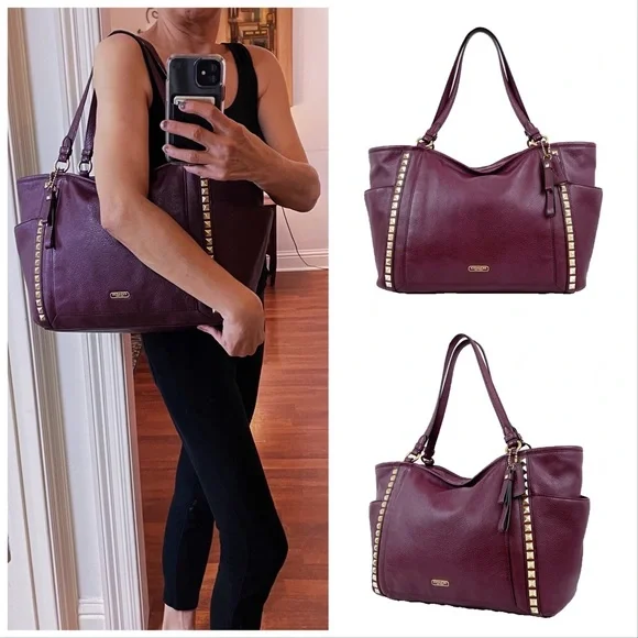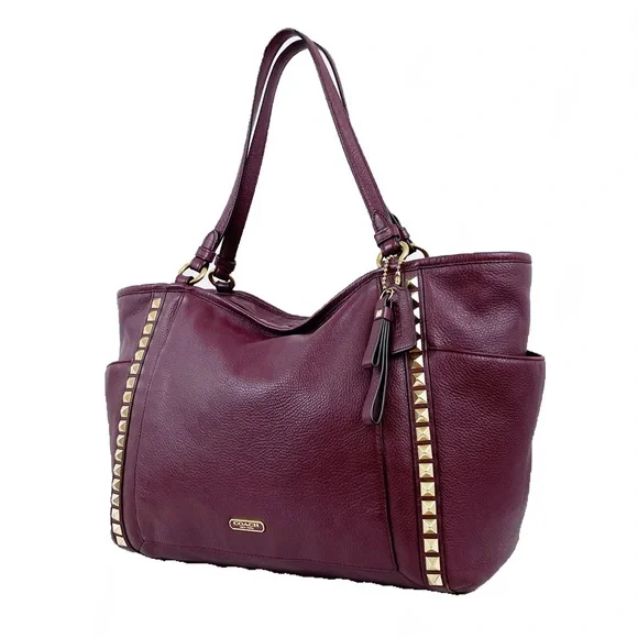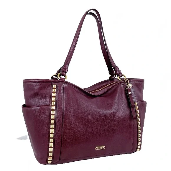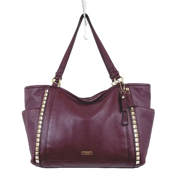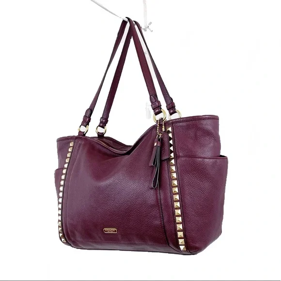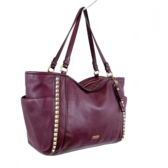 Coach All Leather Berry Large Carrie Park Pyramid Stud Tote Bag Carryall