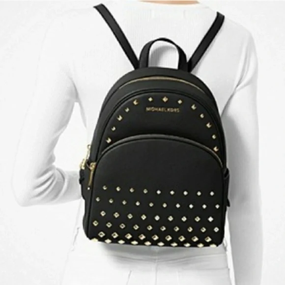 Michael Kors Abby Black and Gold Studded Leather Mini Backpack Bag