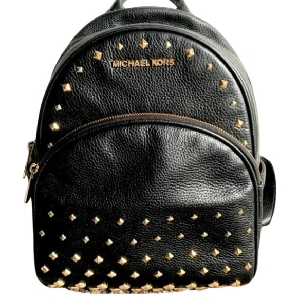 This Michael Kors backpack combines elegance with a touch of edge, featuring a sleek black design adorned with gold-toned studs. The backpack´s modern silhouette and luxurious materials make it a standout accessory for any occasionLite wear no major damage No missing studs as common for this bag But some studs have some scuffs and plate loss ect Hard to see and still looks greatOther than that it’s clean & nice !!!!Edgy Unique Rock