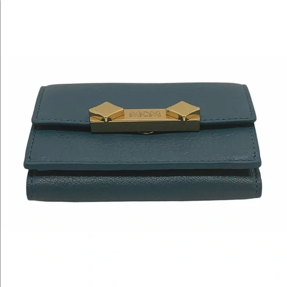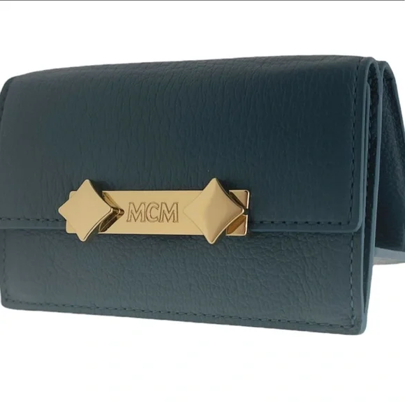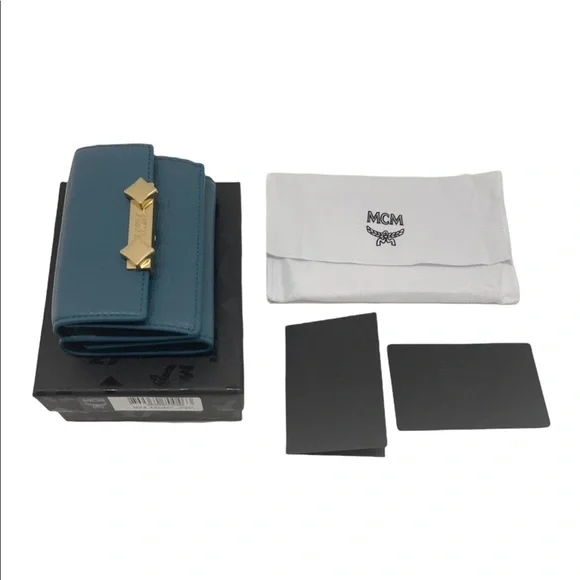 Brand new authentic with box, dust bag, cards and tagsFree fast shipping !-MCM item code inside wallet: MYAASDA01JF001-Deep Lagoon luxurious leather -Mini card case style wallet-Coin compartment-Long bill compartment-Three Card slots-Gold tone hardware with MCM logo engraved Item #2069